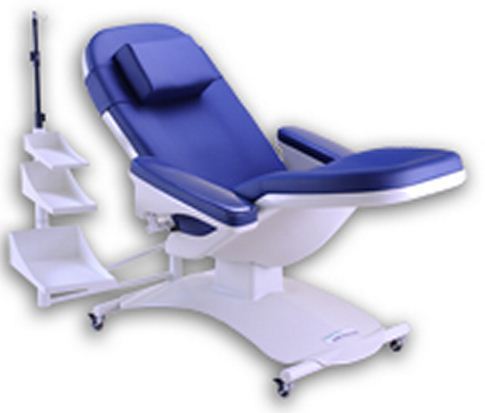 Sillón de donación de sangre ergonómico con ajuste eléctrico y controles de posición preconfigurados.